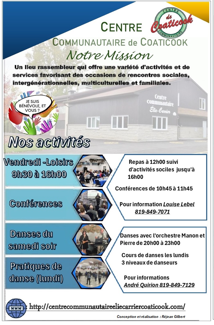 B I E N V E N U E sur le site WEB du Centre Communautaire de Coaticook